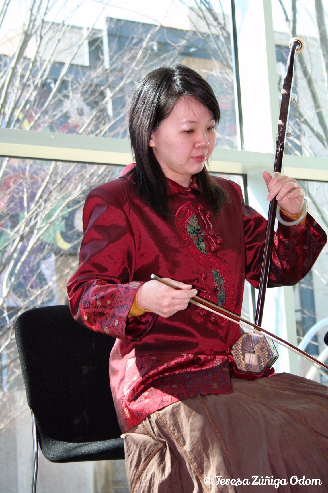 Amy Chen of the BCFA served as Mistress of Ceremonies for the Chinese costume fashion show in the Birmingham Museum of Art. Here she entertains the guests with a favorite Chinese song.