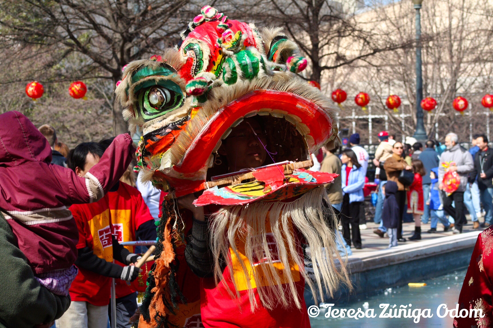 The crowds were drawn to the many vendors at the festival. I saw many red lanterns walking away from the park, including one in my hand!