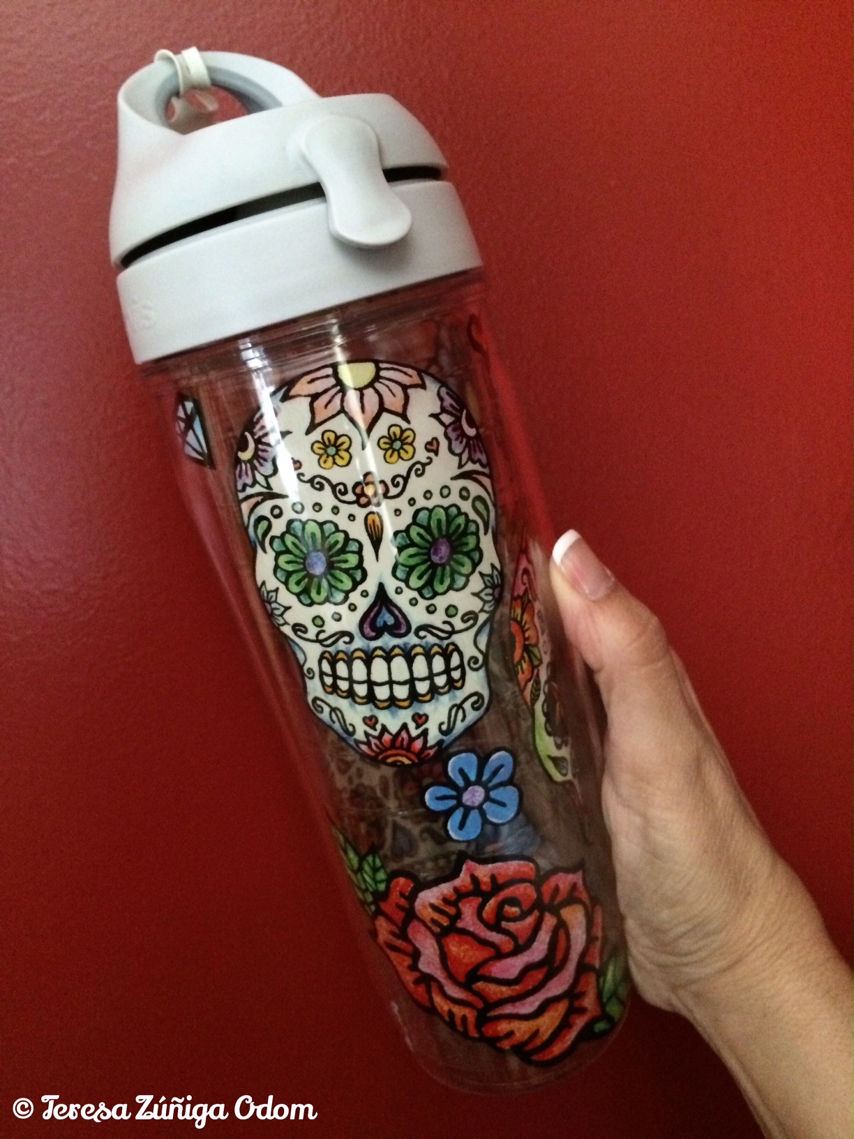This weekend I scored two items! My husby and I are helping our newly married daughter and her husband move to Atlanta this weekend and next. After unloading a U-Haul and two SUVs, we headed to Bed, Bath and Beyond to pick up some storage/organizing items. That’s where I spotted a Tervis 20 oz. water bottle with Sugar Skulls and flowers all over it! I LOVE IT and quickly put it in our buggy! I mean, everyone I know has a Tervis water bottles and now I’ve joined the ranks. Of course, I think mine is the most awesome!