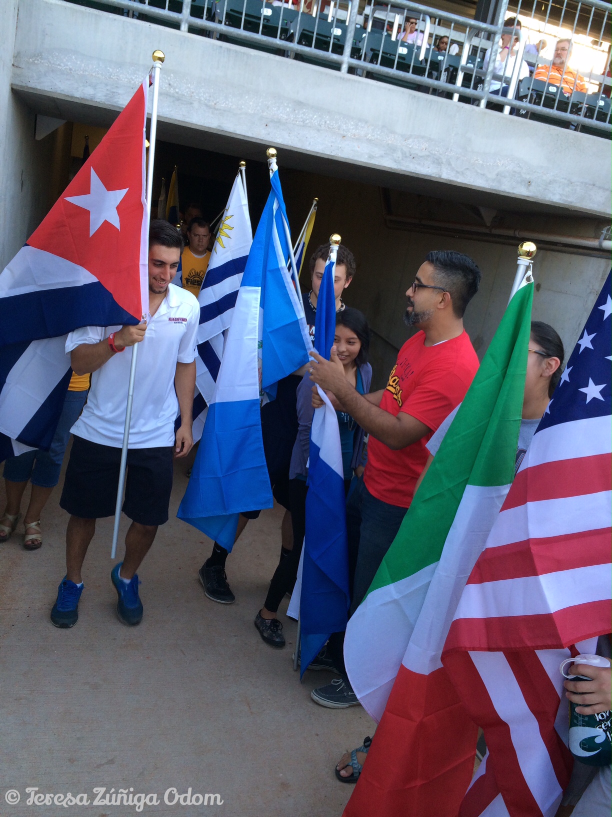 Samford Students participated in the Parade of Latino Country Flags before the beginning of the game.