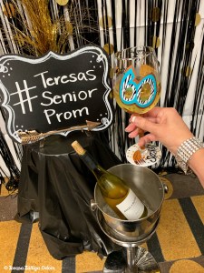 Right at 7 p.m. the guests started arriving…and what fun it was to see everyone all dressed up and really getting into the theme of the party! I found out that night, that so many of my guests did not attend their own proms, so they were really doing it up right that night. There were a few who REALLY went over the top, like my friend Chris Miller. I saw him walking in but I didn’t recognize him. In fact, I thought he was walking through the restaurant to see the owner, Luis. As he got closer to me, I realized who it was and I couldn’t stop laughing! He came dressed in full on 70s with a black rock star hair and he even dyed his beard to complete the look! Every time I look at any photo of Chris from my party I literally laugh out loud!