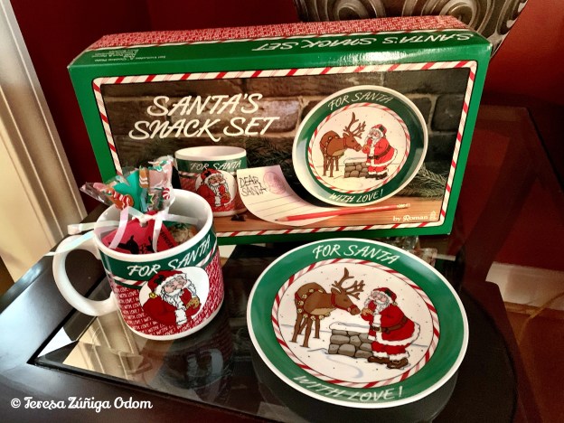 In 1994, I found the cutest little Santa Snack Set. It was perfect. The set included a mug and little plate for Santa so my kids could leave him cookies and milk on Christmas Eve. It also contained a pencil that had “For Santa with Love” written on it along with a cute little note pad with an etching of Santa feeding one of his reindeer.