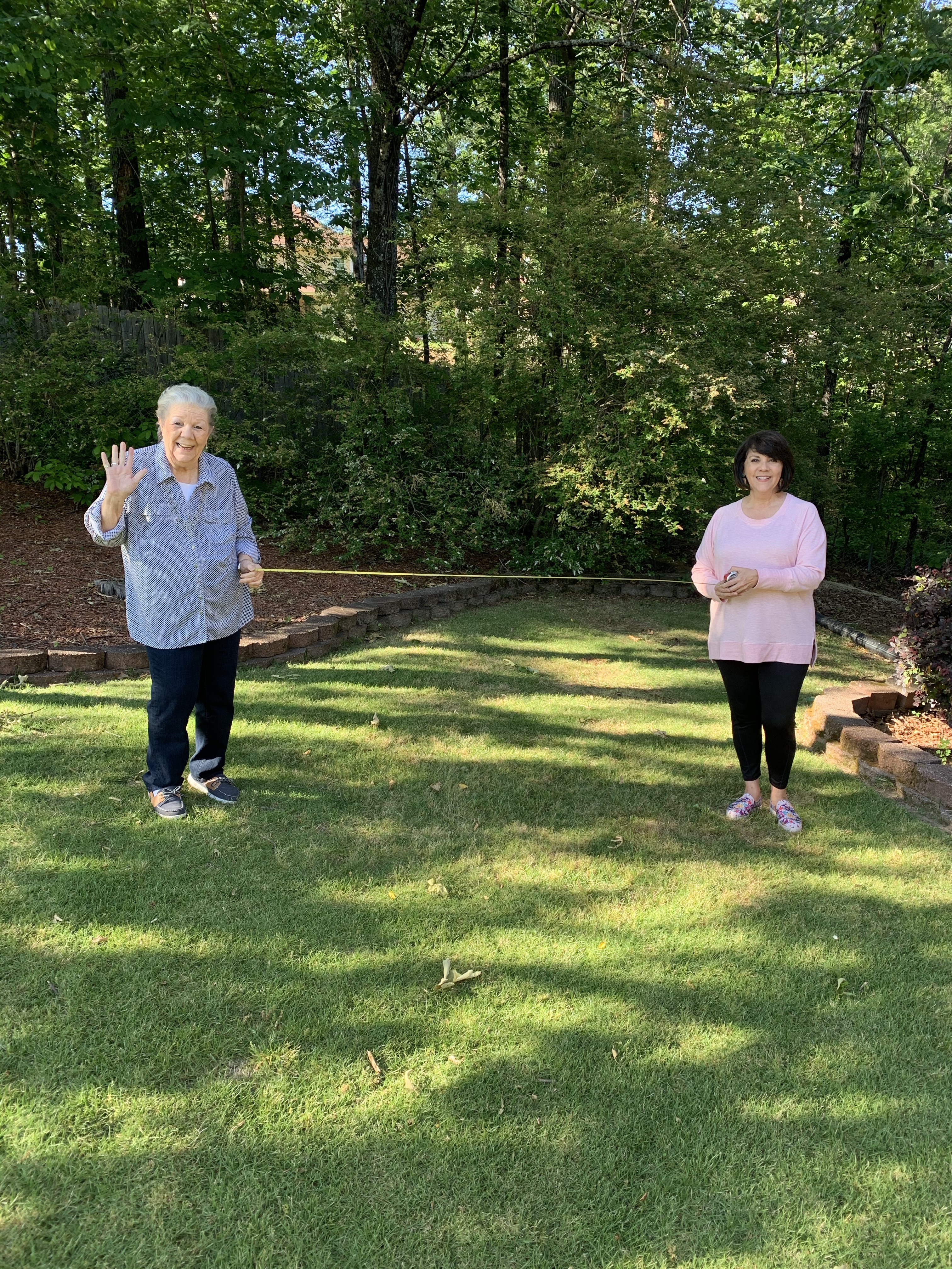 Mothers Day 2020…we had my 81 year old mother over with extra EXTRA precaution! I measure out everything in the house and asked her not to touch anything. Here we are holding the tape measure to make a point!